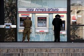 A haredi and a soldier using the bank services. 30.03.2008. Photo: Daniel Dreyfus, Flash 90