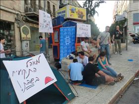 In the heart of Jerusalem this past Shabbat, dozens of protesters attended Saturday's "Tent of the Stuck" rallied in favor of public transportation on Shabbat. The event was cosponsored by Hiddush and a youth forum, "Bamah". Sitting at the bus station on Shlomtzion street, surrounded by popular bars and restaurants of Jerusalem, protesters spoke out about the need for public transportation to and from this area on Saturdays.